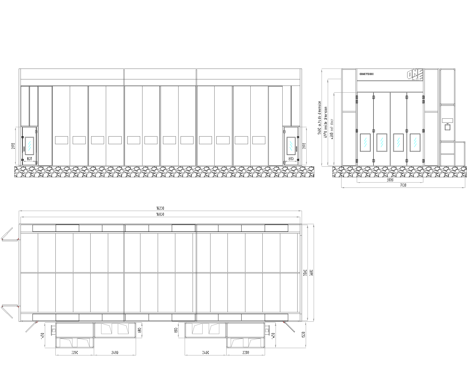 16 200 x 5 600 x 5 600 (units are excluded) |